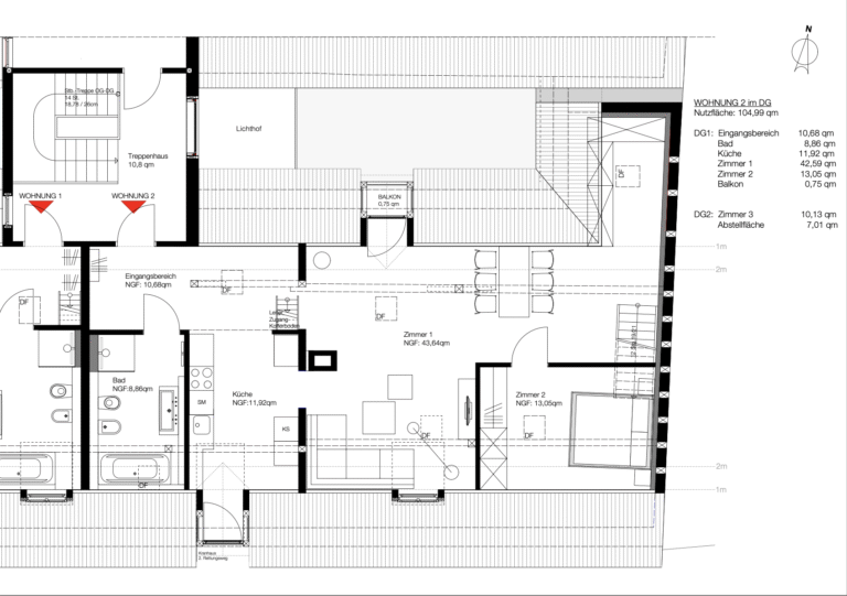 - Größe: 106 m² + 1 m² Austritt